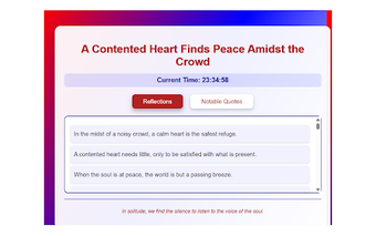 A Contented Heart Finds เป็นส่วนขยาย Chrome ที่ออกแบบมาเพื่อสร้างแรงบันดาลใจให้กับผู้ใช้ด้วยคำคม 100 ข้อที่คัดสรรมาอย่างดีซึ่งมุ่งเน้นไปที่ความสงบภายในและความพอใจ คำคมเหล่านี้ถูกจัดหมวดหมู่เป็นสองส่วนหลัก: การสะท้อนและคำคมที่โดดเด่น โดยแต่ละส่วนเสนอข้อมูลเชิงลึกที่ลึกซึ้งเกี่ยวกับการบรรลุความสงบท่ามกลางความวุ่นวายของชีวิต ส่วนเสริมฟรีนี้ทำหน้าที่เป็นการเตือนใจประจำวันในการปลูกฝังหัวใจที่สงบและชื่นชมช่วงเวลาปัจจุบัน ทำให้เป็นเครื่องมือที่มีค่า สำหรับผู้ที่แสวงหาความสงบในชีวิตประจำวันของพวกเขา